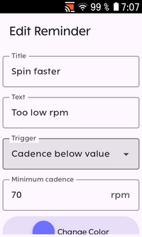 Karoo extension that displays in-ride alerts based on custom triggers. Reminders can be set to activate after a specific time interval, distance traveled, energy output or when a sensor value is outside a defined range (e.g., heart rate exceeds zone 2).